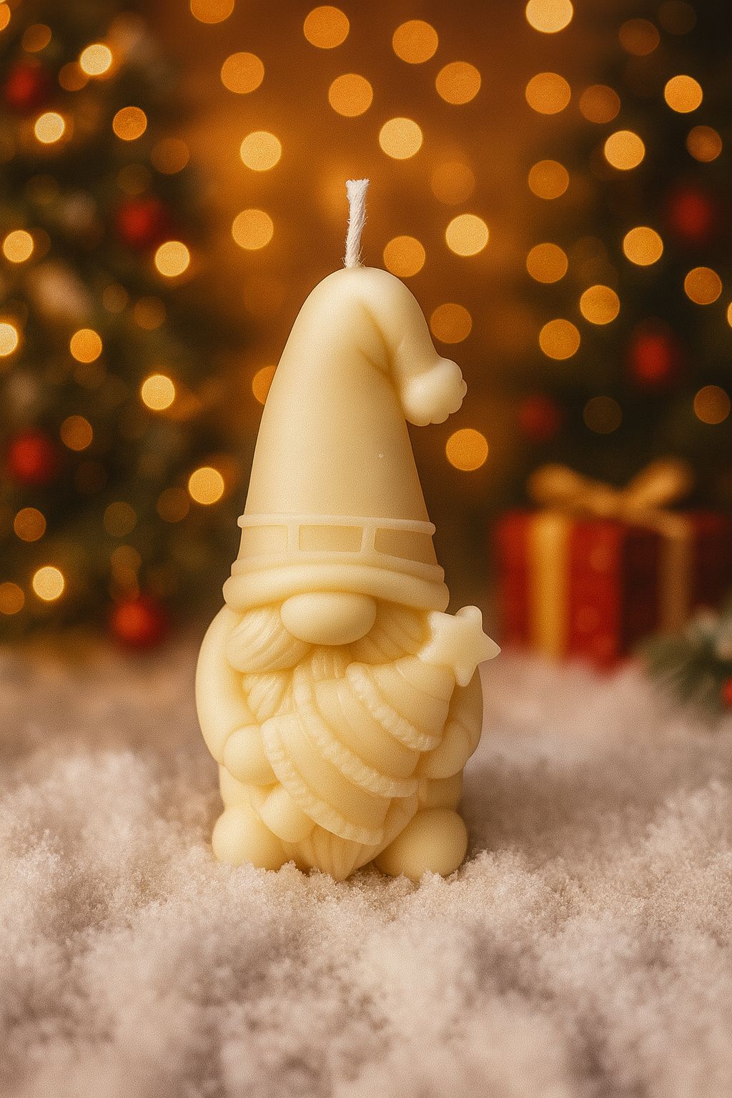 Dieser kleine Weihnachtswichtel mit seinem Tännchen und dem Stern ist pure Weihnachtsmagie. Die zart cremige Kerze zaubert ein warmes, gemütliches Licht und lässt dein Zuhause wie eine liebevoll dekorierte Winterstube wirken. Ideal als herzige Tischdeko oder als Geschenk für Menschen, die Weihnachten im Herzen tragen.